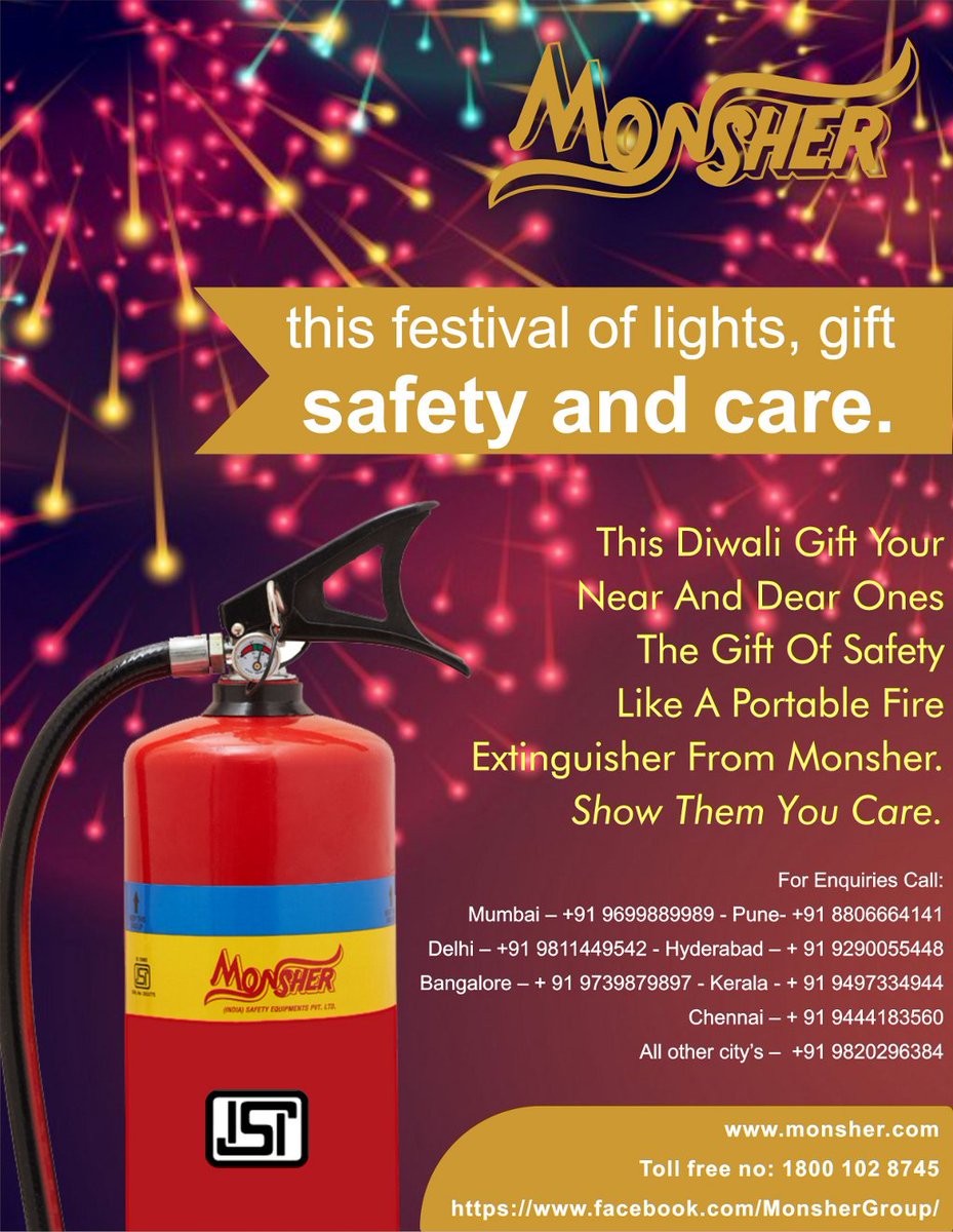 This Diwali gift your dear ones the gift of safety like a #PortableFireExtinguisher from #Monsher. Visit us at goo.gl/H52cTp