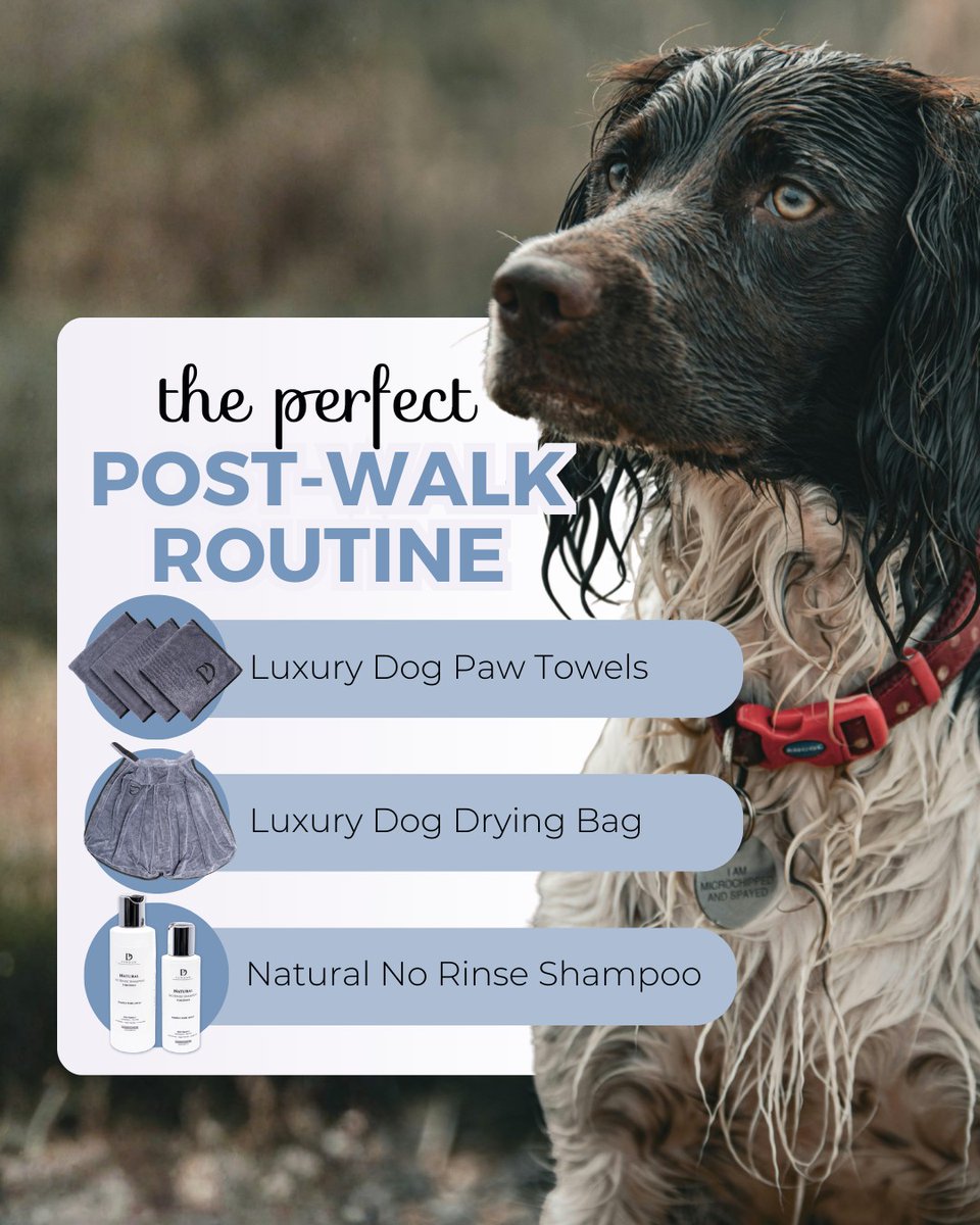 Wet paws on the sofa. Dog smell in the car. Mud from the door to the kitchen 🐾 Our fix? Paw towel → Drying bag → No-rinse shampoo. Simple routine. Cleaner home. #PostWalkRoutine #DogWalkEssentials #PawdawOfLondon #MuddyDogs