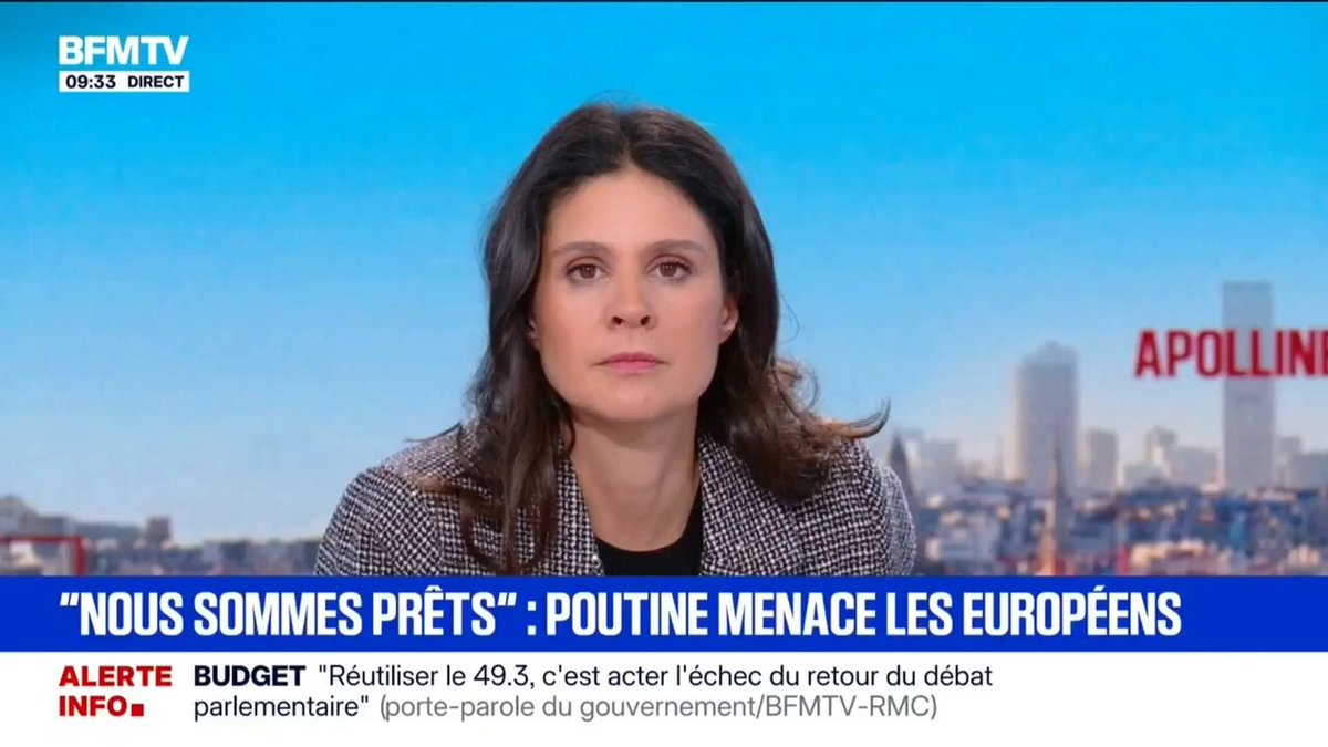 C’est l’inversion accusatoire du jour 😱 ✅ #Poutine déclare officiellement « Nous ne prévoyons PAS de combattre l’Europe. » ⚠️ Et @BFMTV (présentatrice et invité) déclarent que ce n’est pas cohérent et titre... « Vladimir Poutine qui se dit "prêt" à faire la guerre aux…