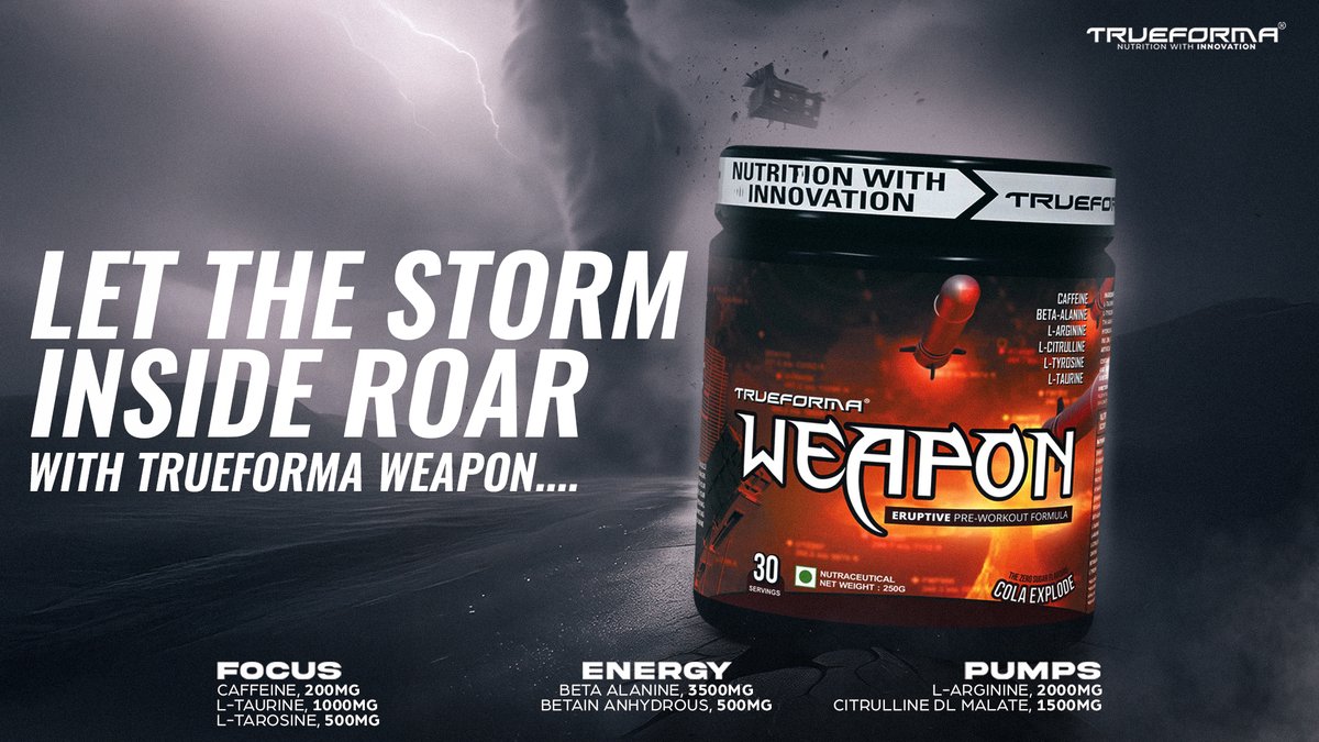 🚀 Fuel Your Ambition with Trueforma® Weapon Unleash clean energy, razor-sharp focus & peak strength. Trusted by top athletes across India. 💪 Train harder. Perform better. 🛒 Buy now: trueforma.in #TrueformaWeapon #PreWorkoutIndia #CleanPreWorkout #AthleteFuel
