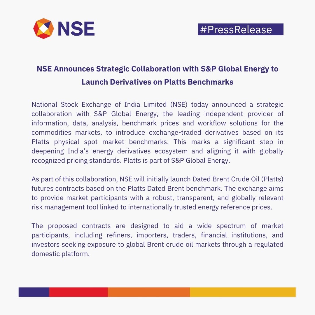 Press Release: NSE Announces Strategic Collaboration with S&P Global Energy to Launch Derivatives on Platts Benchmarks. To know more click here- nsearchives.nseindia.com//web/pressrele… spglobal.com/energy/en #NSE #NSEIndia #PressRelease #StrategicCollaboration #Launch #Derivatives #Platts