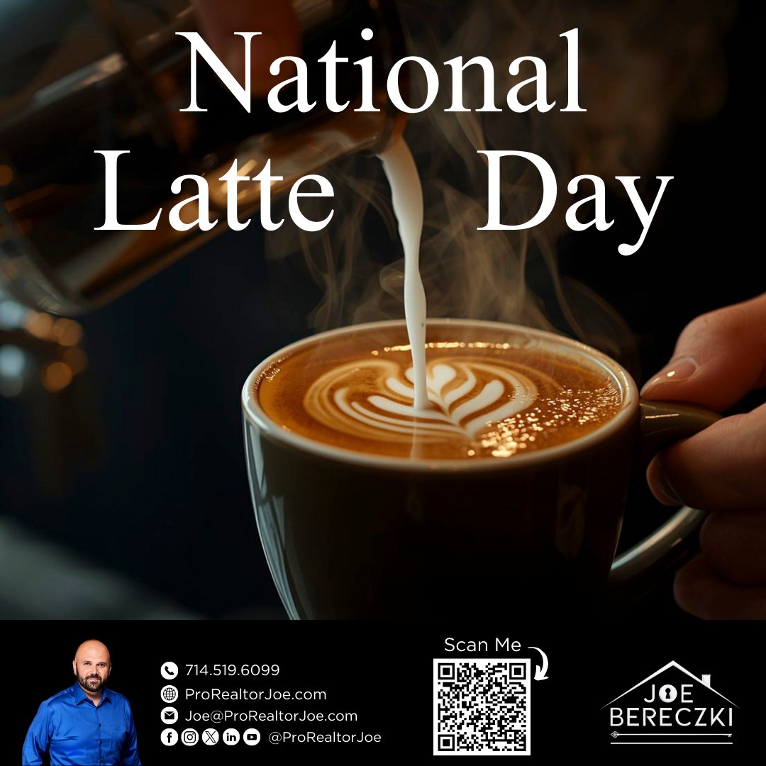 ☕️ Happy National Latte Day! Treat yourself to a latte from your favorite cafe. ProRealtorJoe.com #ProRealtorJoe #JoeBereczki #JoetheCaliRealtor #whittier #lamirada #yorbalinda #lahabra #brea #fullerton #placentia #anaheim #anaheimhills #buenapark #la #oc #orangecounty