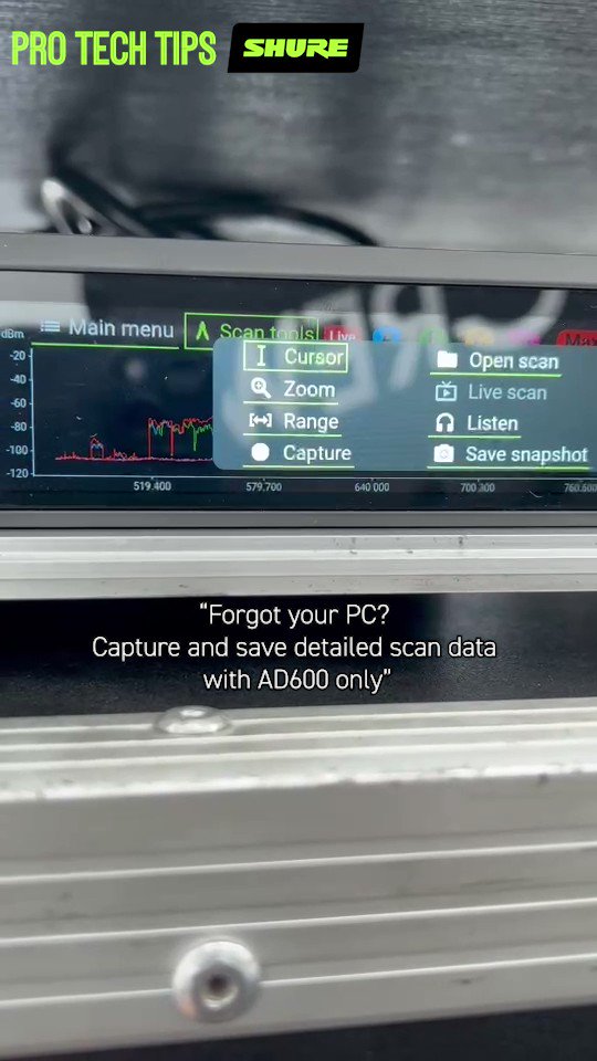 ⛺現場からお届け🌞 ミハウのPRO TECH TIPSショート第3弾! ——————— PCを忘れた💻?! 安心してください、持ってますよ AD600。AD600で詳細なスキャンデータを捉えて保存。 ——————— #Proaudio #protechtips #現場 #AXTDigital #スペクトラムマネージャー