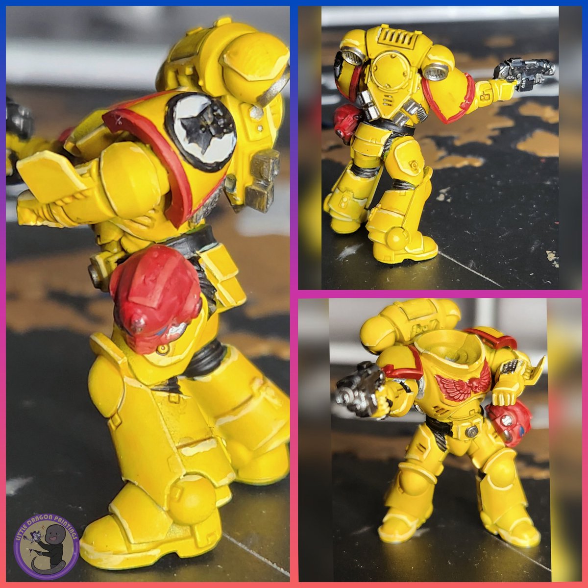 Hey everyone, here is my latest update for progress Tuesday. First space marines nearly done just have to tidy the lines up and do the head. Please let me know what you think.^^ #warhammercommunity #warhammer40k #progresstuesday #imperialfists #spacemarines
