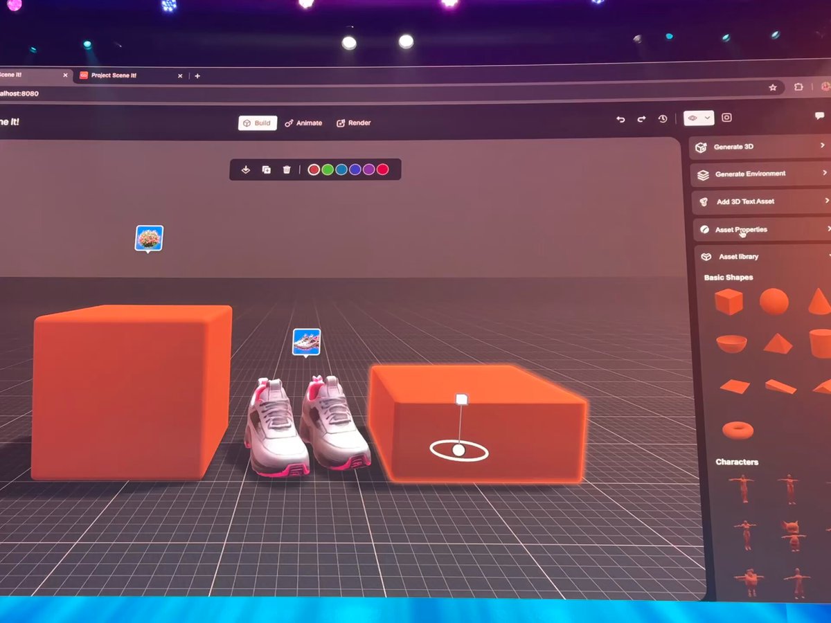 Project Scene It! 3Dエディター上でプロンプトへの指示を書ける技術。 スニーカーの隣に直方体を配置し、写真の花を指示すれば、立派な3Dの静止画ができあがる。 #ProjectSceneIt #AdobeMAX