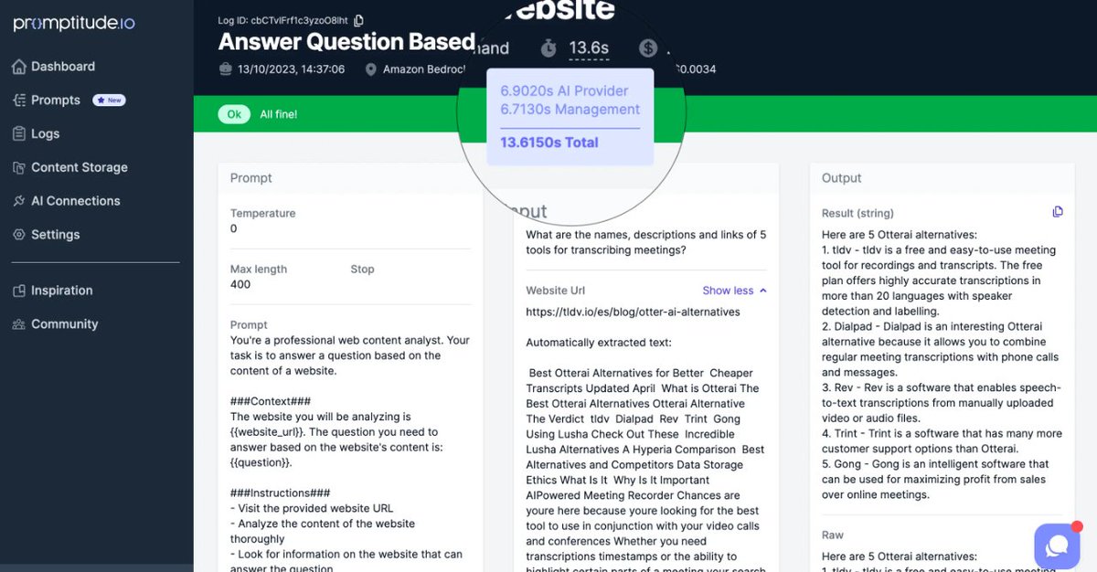 Ever wondered how long it takes for an AI model and content database to generate results? With Promptitude, you can now log #promptgeneration times! 🕒 Imagine having the power to track the speed of your AI's performance in real-time.