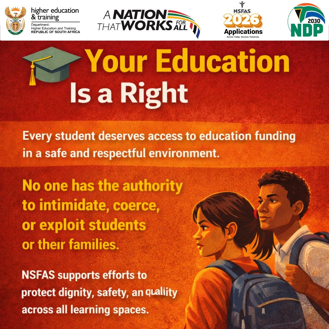 🎓 Education is a right — not a bargaining tool. Students deserve support free from coercion, intimidation, or abuse. #NSFAS2026 #ProtectStudents #GBVAwareness