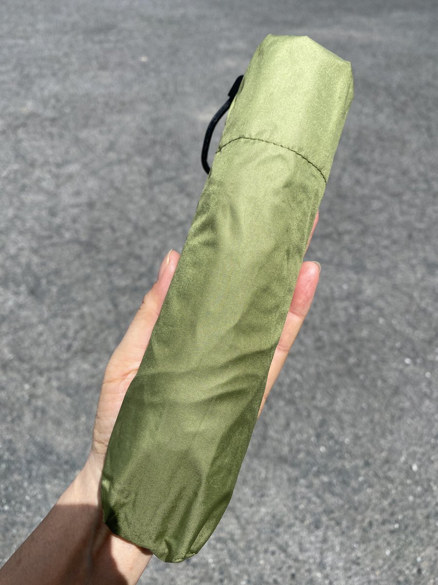 #PROTECTU #04グリーン はカーキな色味💚 持ち手も薄く、とにかくコンパクトで持ち運びに◎ 旅行用に遠慮なく使える 晴雨兼用の傘が欲しかったので満足✨ 送料無料1,760円(ヨドバシオンラインで購入) ㌽還元で実質1,500円位
