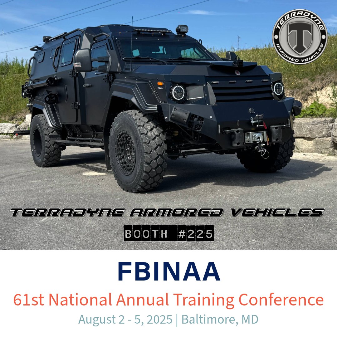 The GURKHA MPV will be displayed at the 2025 FBINAA Conference & Exhibition in Baltimore, August 2-5. Visit Terradyne booth 225 to see the rugged, mission-ready MPV, built for performance, protection, and presence. #FBINAA #Baltimore #ProtectionWithPresence