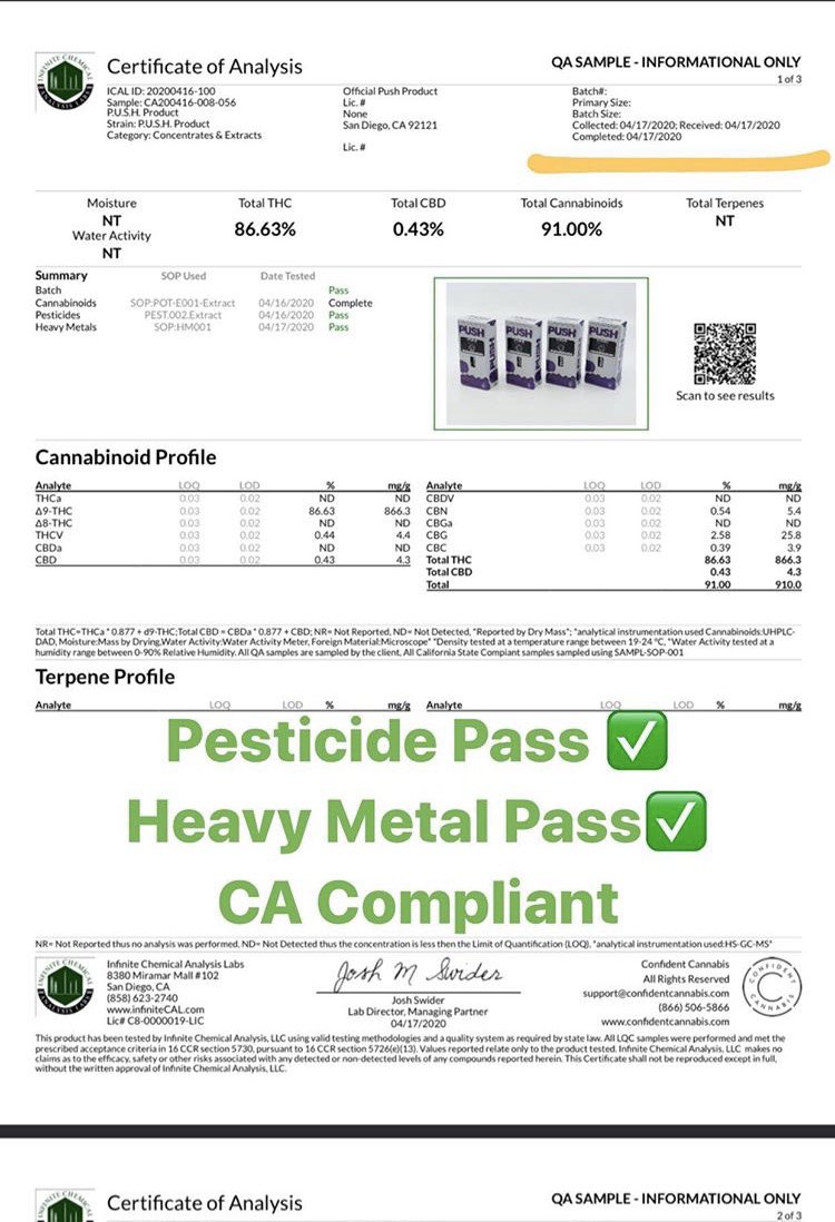 Our labs our in!! If the company or brand can’t provide monthly or bi monthly LAB results, Don’t trust it! I wouldn’t start a brand without being confident in the product and quality! Order your #PushPens & #PushPods today !