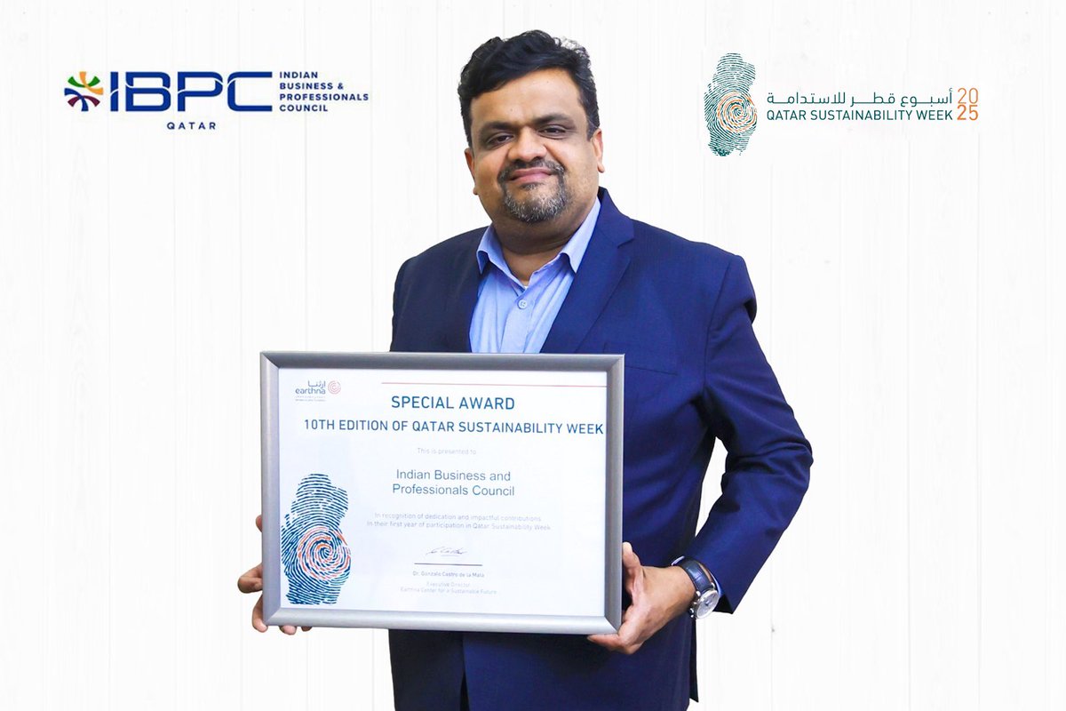Congratulations to Indian Business and Professionals Council, IBPC Qatar on earning a Special Award at the 10th Qatar Sustainability Week (#QSW) in your first year of participation! 🏆🇮🇳🇶🇦 Your dedication and impactful contributions in the very first year are a source of
