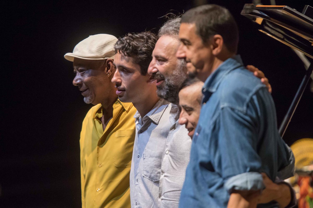 QUE BOM! È già festa in #Brasile, nel primo giorno di registrazione del nuovo disco italo-brasiliano di Stefano Bollani, a #RioDeJaneiro con Jurim Moreira (batteria) Thiago Da Serrinha (percussioni), Jorge Helder (basso) e Armando Marcal (percussioni). © Vinícius Giffoni