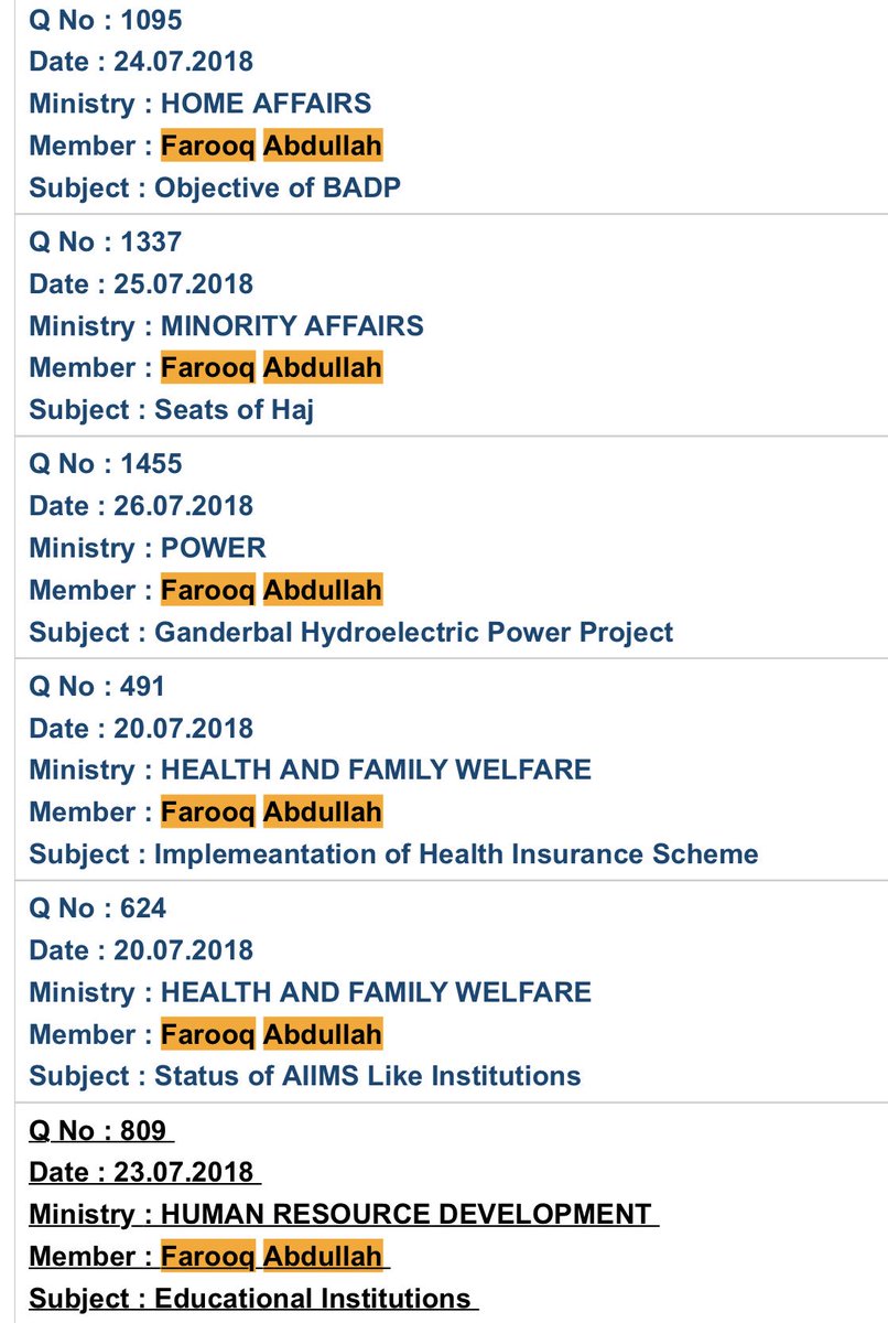Replies 2 d #QuestionsRaised by HMP #DrFarooqAbdullah in #Parliament concerning d #SrinagarParliamentaryConstituency in particular&state of #JammuKashmir in general. #WorkOnCentralUniversityKmr #93MVNewGanderbalPowerProject #NightFlightsFromSrinagarAirport