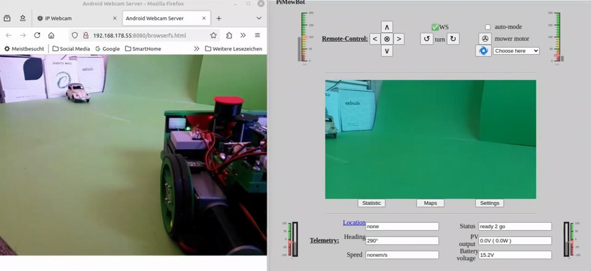 A sunny #MagPiMonday & big thanks @Ullisun58 for sharing this video of his MINI doing a test run of latest version of #PiMowBot software. He drives his MINI manually with #RControlBLE, on the right side you can see the enhanced WebUI with the visualization of the control data.