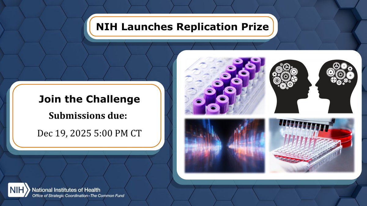 Submit your ideas to the NIH Replication Prize to help NIH determine areas of greatest need for #replication studies and advance strategies to increase #rigor and #replicability of biomedical research. Learn more: bit.ly/3ICAkc1