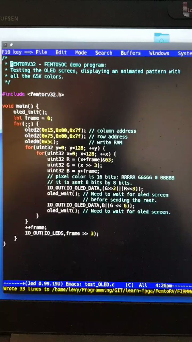 A #risc5 core programmed in C on the $20 IceStick #fpga, impossible ? femtoRV32 / femtoSOC make it possible. Coming next: Linux kernel (just kidding, 4kb RAM won't suffice)