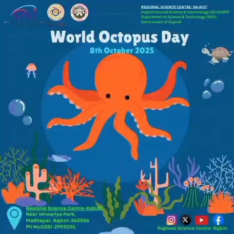 🎉 #RscRajkot is celebrating #WorldOctopusDay today! 🐙📚 Visitors are enjoying a documentary video on octopuses and learning fun facts about these intelligent creatures! 🤓 Did you know octopuses have 3 hearts and blue blood?