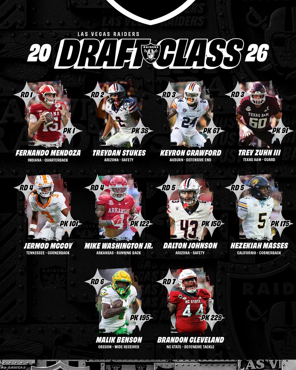 With the draft now complete here is my rating of every pick by the #Raiders in the 2026 NFL draft 👇 What do you think #RaiderNation? What grades are too high? What grades are too low?