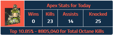 I just finished a session of ranked apex. I finished with 0 Win(s), 23 Kills, 14 Assists and 25 Knockdowns. Highlights will be posted to the Youtube in the morning! youtube.com/HawkSlayer Don't forget to like and subscribe! #ApexLegends #RankedGameplay #Highlights