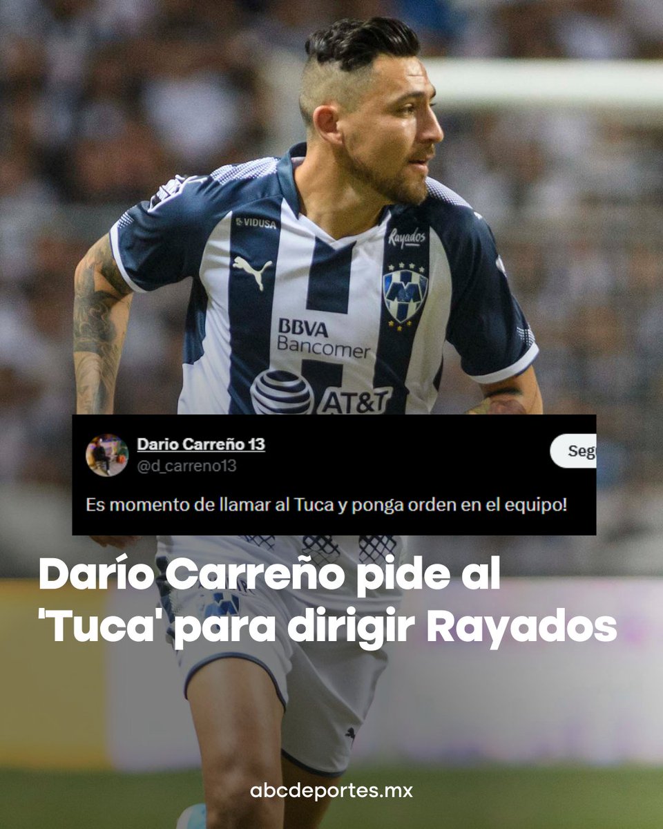 📢⚽ El ex #Rayado Darío Carreño señaló en redes sociales que Monterrey necesita disciplina en el vestidor y lanzó el nombre de Ricardo “Tuca” Ferretti como opción para poner orden en el equipo. #Rayados #LigaMX #TucaFerretti #ABCDeportes