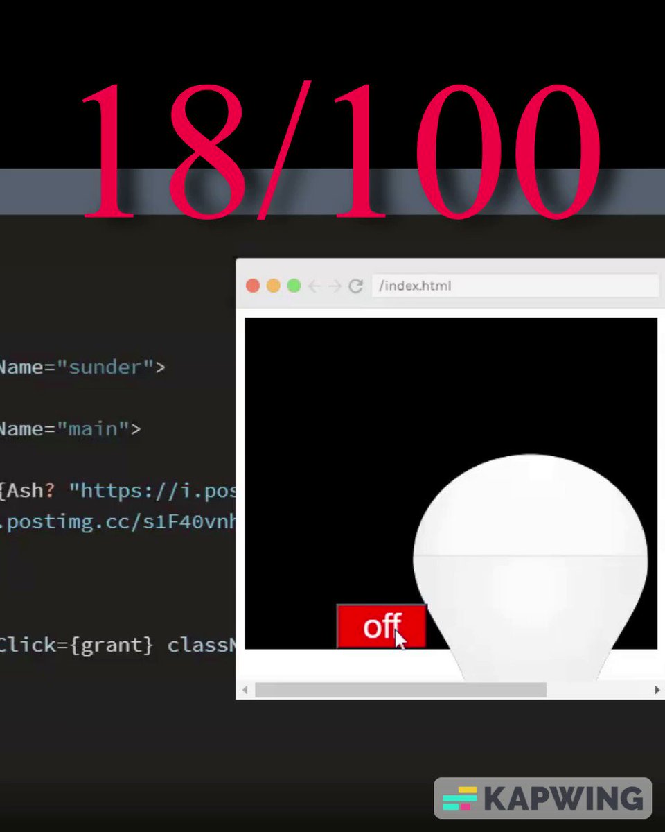 Day 18 of my react js learning today i have create this bulb project by using react state and ternary operator visit my project here scrimba.com/scrim/ck23ggCv #100DaysOfCode #100daysofcodechallenge #reactjscode #reactjsapp #reactjscomponents
