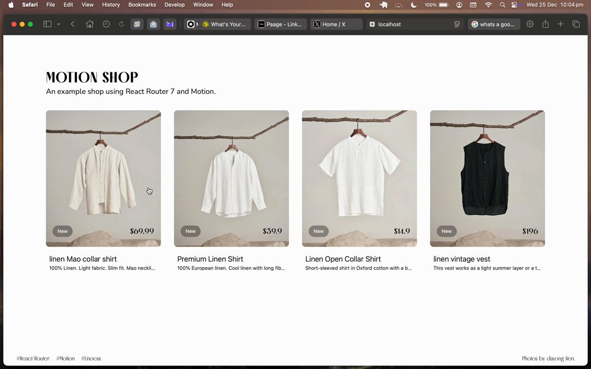 a demo using motion previously @framermotion layout animation , #motionLayoutAnimation #pageTransition #reactRouter7 #UXUI