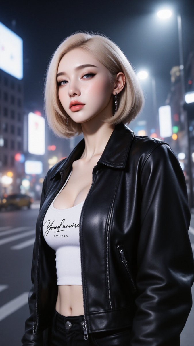 Timeless elegance with a touch of rebellion in a black leather jacket 🖤✨ #LeatherJacket #BlackLeather #RebelStyle #FashionVibes #AIart #YonasLumiereStudio