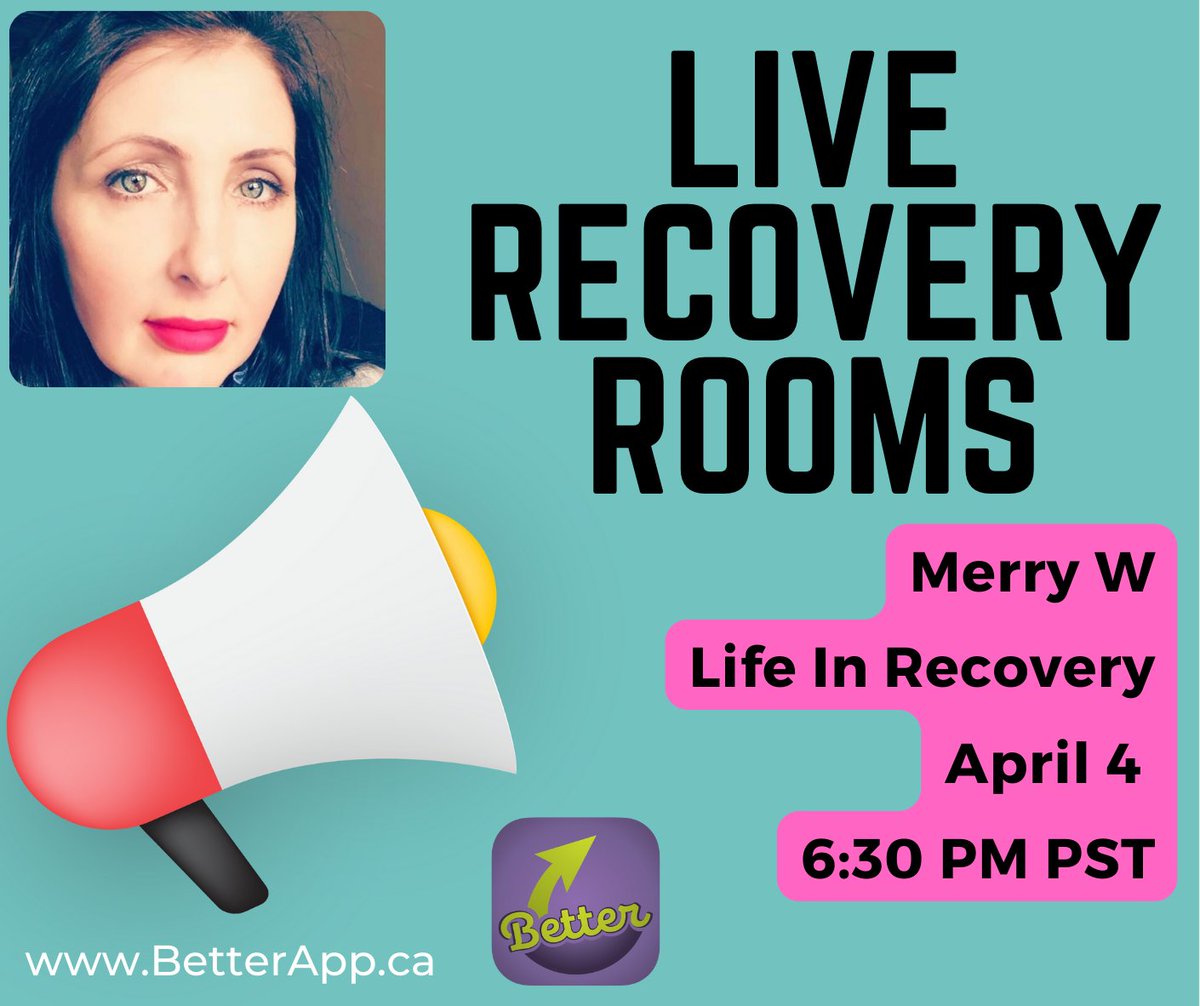 Tonight Recovery Coach Merry shares in a Recovery Room on Better - My Recovery App Search for 'Better My Recovery App" in your app store. #SoberAPP #12StepApp #RecoveryAPP #OverdosePreventionAPP #StopOverdose #HarmReductionAPP