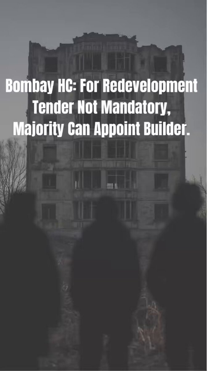 🚨 Bombay HC Verdict Tender is NOT mandatory for housing society redevelopment 🏠⚖️ 👉 If majority members approve & process is transparent, builder can be appointed without tender. @SquareFeatIndia #BombayHC #Redevelopment #HousingSociety #RealEstateLaw #MumbaiRealEstate