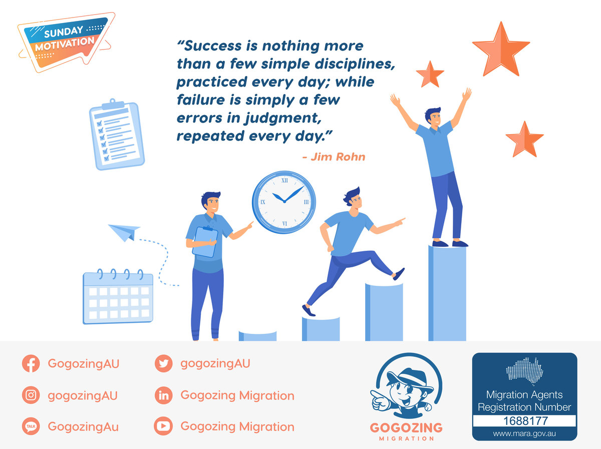 All you need to do is commit to a few simple disciplines, practiced diligently every day. Read more: facebook.com/gogozingAU #GogozingMigration #RegisteredMigrationAgent #PrVisaAu #AustralianDream #AustralianVisaApplication
