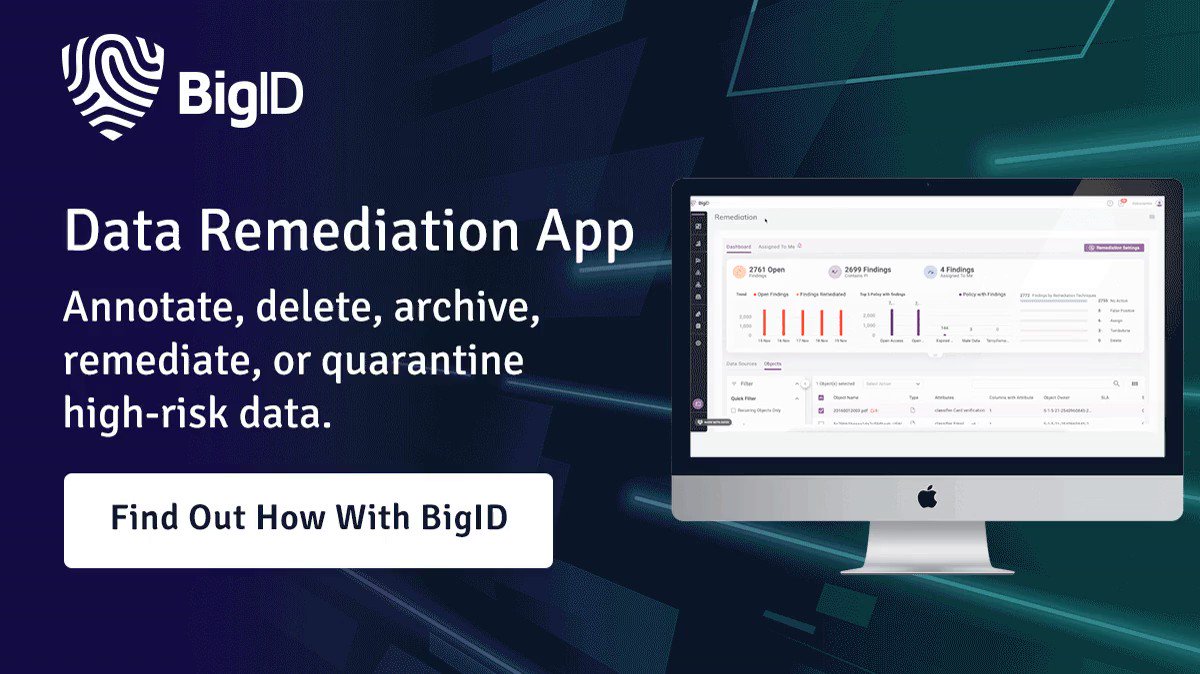 With #BigID's Data Remediation #App you can remediate sensitive, critical & #RegulatedData — across structured, unstructured, and semi-structured sources. Learn more about remediating violations, managing exceptions, & delegating tasks with workflows >> bigid.co/3dHAz1Z