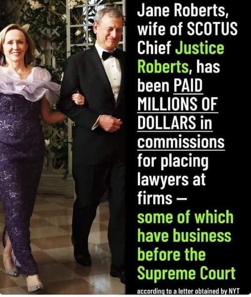Roberts also needs to be removed as Chief Justice. He did nothing while all the corruption of "gifts" continued even though it was HIS job to keep his court clean! #RemoveRoberts #ImpeachThomas #ImpeachAlito
