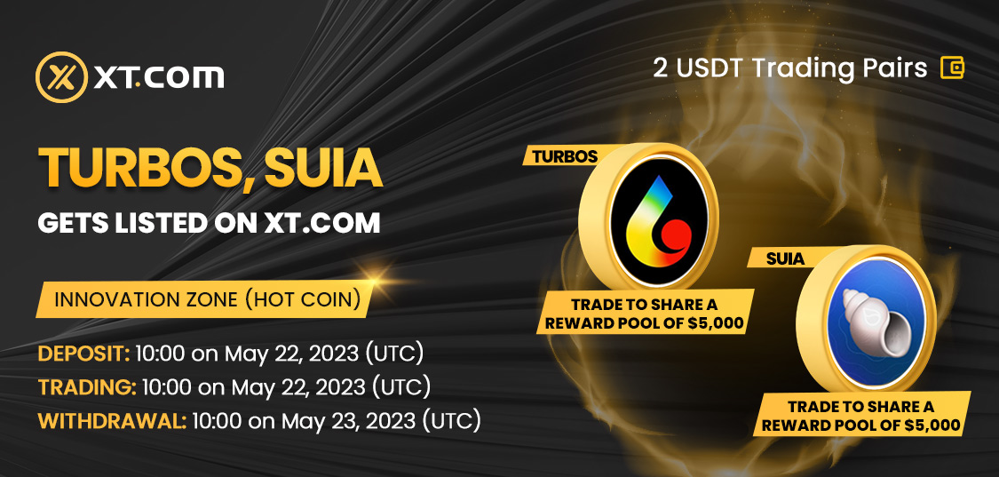 #XTexchange will list @Turbos_finance & @Suia2023 in the Innovation Zone (HOT COIN) under the #USDT pair. ✅Deposit: 10:00 on May 22 (UTC) ✅Trading: 10:00 on May 22 (UTC) ✅Withdrawal: 10:00 on May 23 (UTC) 🏆Trade to win a share of the $5,000 #rewardpool. #CryptoNews