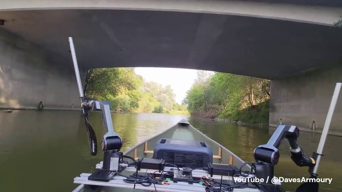 ロボットアームが漕ぐボートに乗って川下り youtu.be/XQX0SXHnbyk #DIY #handmade #RobotArm #PiPER #Jetson #ROS #boat #rowing