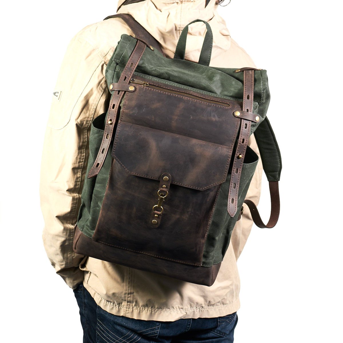 This bag is not only incredibly sturdy and practical but it is also a work of art. buff.ly/2NW5YAf #deepgreen #brown #rolltopbackpack #waxedcotton #handmade #leathergoods #handcraft #backpack #fashion #lifestyle #bespokefashion