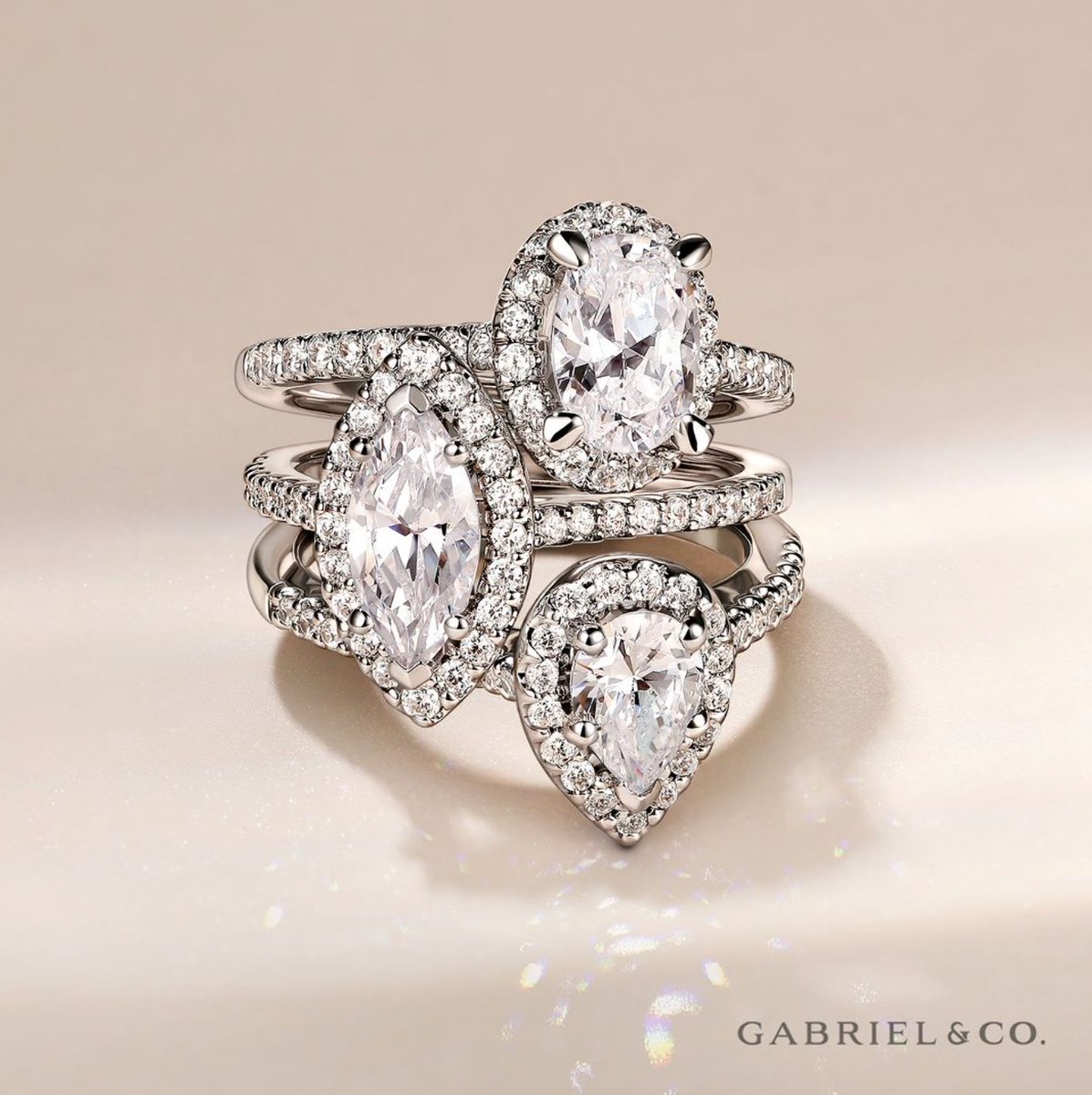 Marquise, round & pear halo rings ... take your pick for a glamorous statement. ✨💖 Styles: ER14725O4W44JJ, ER5828W44JJ & ER6419M4W44JJ #roundcut #roundcutdiamond #roundcutring #ovalcut #ovalcutdiamond #engagementring #engaged #engagementringgoals