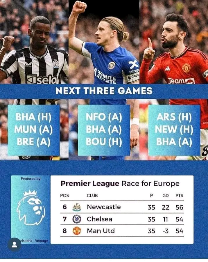 What do you think will happen in these fixtures.. Brighton being the Catalyst, to face Chelsea, Newcastle amd Manchester United Drop your predictions 👇 #CFC #EPL #RunIn