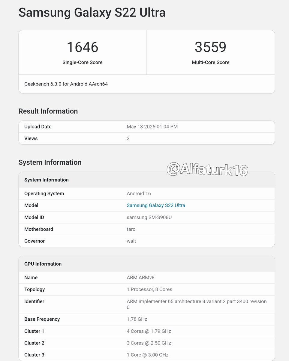 Galaxy S22 Ultra spotted running Android 16 with One UI 8 on GeekBench ‼️‼️ #samsung #s22ultra #OneUI8