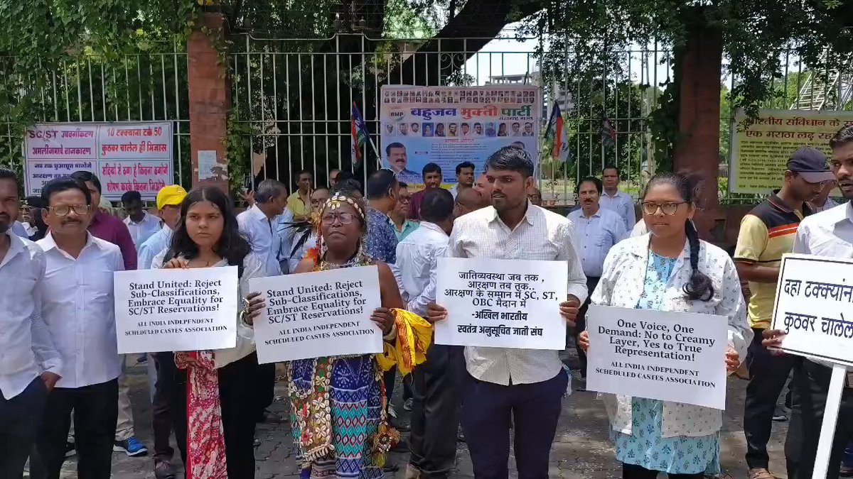 पारंपरिक आदिवासी वेशभूषा में ट्राइबल्स युवाओं ने आरक्षण में वर्गीकरण का विरोध किया. Nagpur | Sanvidhan Chowk #SCSTAndolan #SCST