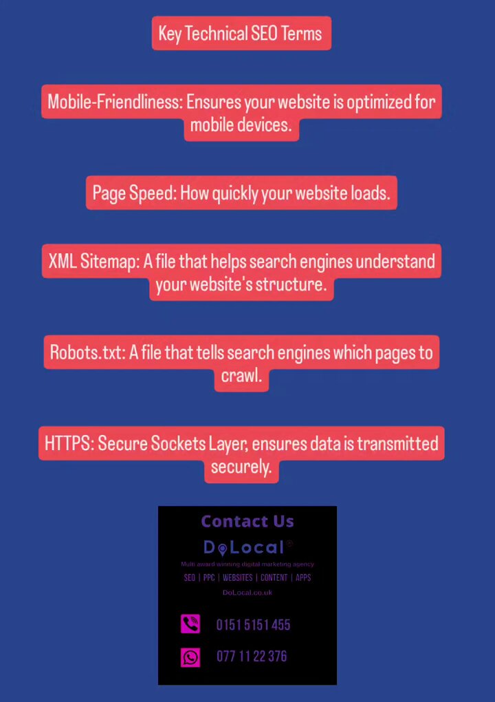Here are Key Terms for Technical SEO. Follow for more! #seo #technicalseo #sitemap #pagespeed #searchengineoptimisation #digitalmarketing #dolocal