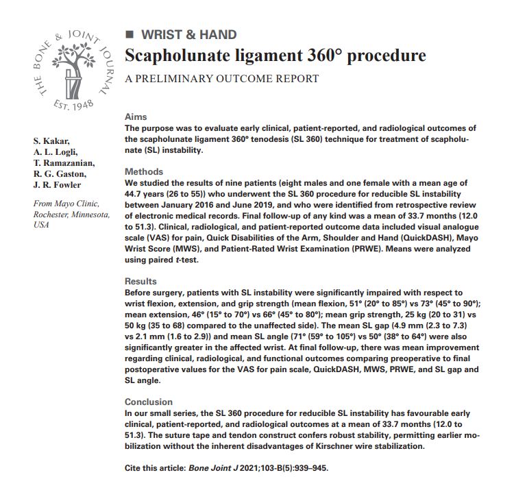 In treating scapholunate ligament injuries, one needs to consider a myriad of factors to tailor ones treatment. A massive thank you to Drs. Logli, Ramazanian, Gaston & Fowler #SL360 @AnthonyLogliMD @jrfowlermd @OrthoCarolina @RamazanianTaghi @HandSociety @bjjeditor @FESSHEurope