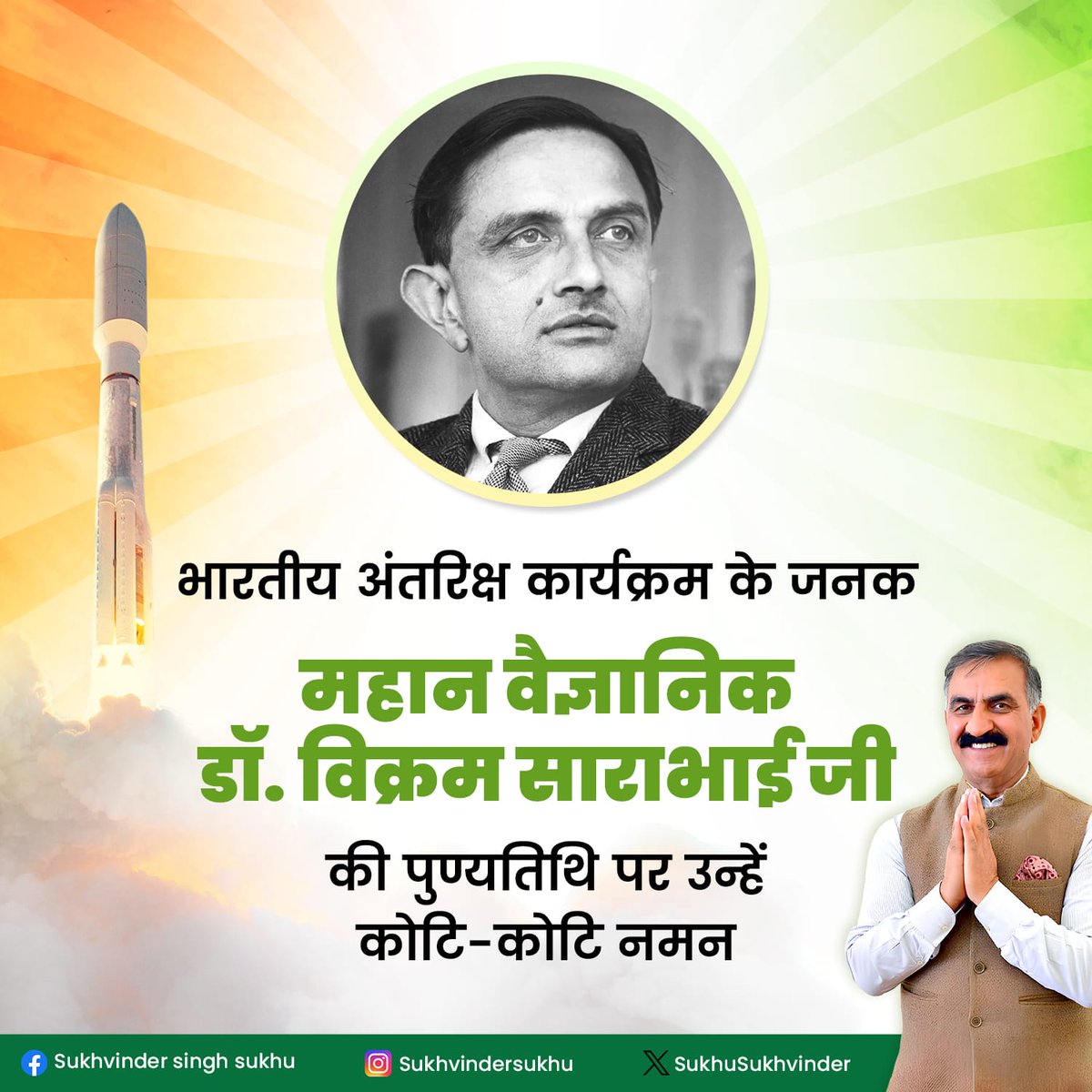 Respect! #VikramSarabhai - Father of India's #SpaceProgramme .His doctoral advisor was Nobel laureate C. V. Raman.