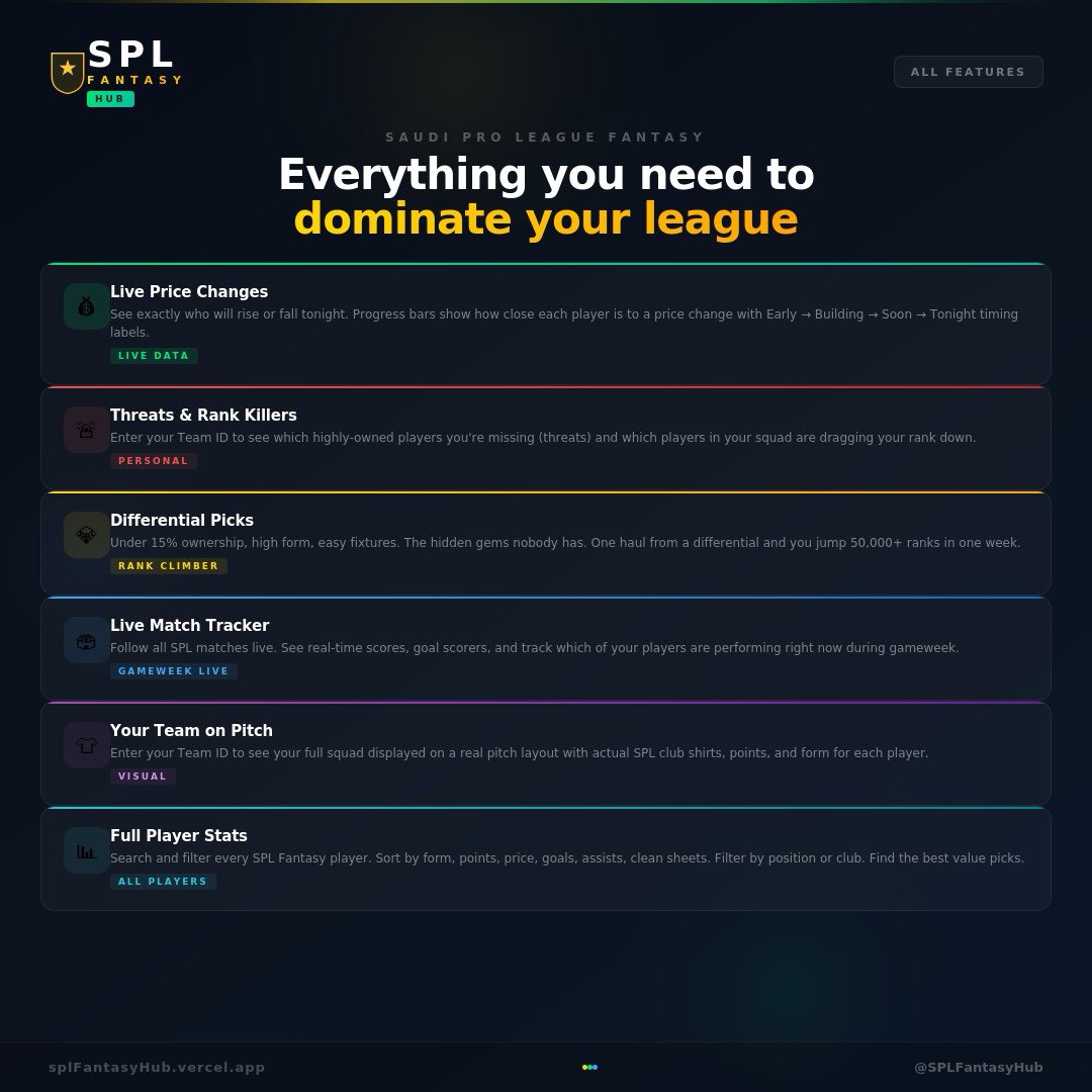 ๐ ููุฏู ููู SPL Fantasy Hub โ ุงูุฃุฏุงุฉ ุงูุชู ุทุงู ุงูุชุธุงุฑูุง ูู ุฏูุฑู ุงููุงูุชุงุฒู ุงูุณุนูุฏู. ุชุงุจุน ุฃุณุนุงุฑ ุงููุงุนุจููุ ุงุญุตู ุนูู ุชูุตูุงุช ุงูุฐูุงุก ุงูุงุตุทูุงุนูุ ุงูุชุดู ุงููุงุนุจูู ุงูุชูุงุถููููุ ูุชุตุฏุฑ ุฏูุฑูู. ู ุฌุงูู 100ูช. ๐ spl-fantasy.vercel.app ๐งต ุชุงุจุน ๐ #SPLFantasy