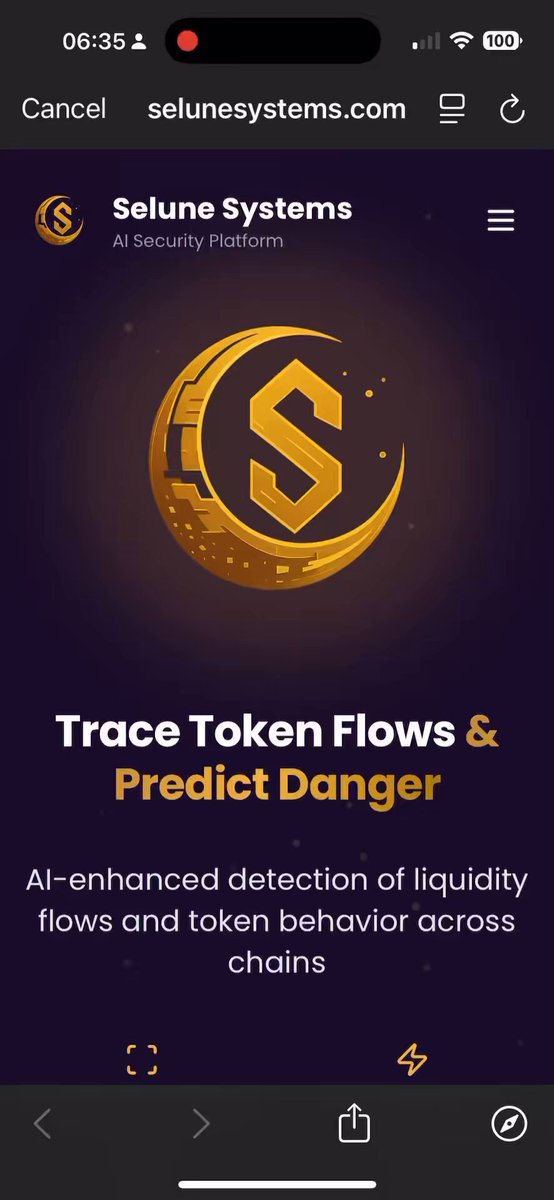 $SELUNE | Solana | 20K mc Haven’t had time to really test out the product yet, so this comes with some risk - but the web looks clean and feels like it’s flying under the radar right now. SeluneSystems blends real-time token analysis with predictive AI, scanning Solana tokens…