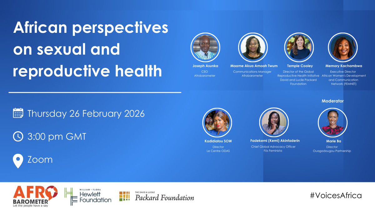 Our Executive Director, Memory Kachambwa, joins global thought leaders at Afrobarometer’s webinar on African perspectives on sexual and reproductive health. From policy to lived realities, this conversation will unpack what Africans really think about #SRHR — and why centering
