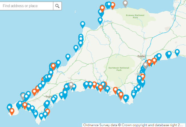 The #WaterFitLive map of #SWEngland #SewagePollution is gradually improving following the colder, drier weather of late. The most recent spill at #Harlyn Bay has finally stopped after over a week! #Woolacombe and #Exmouth are still going strong though. 25/n
