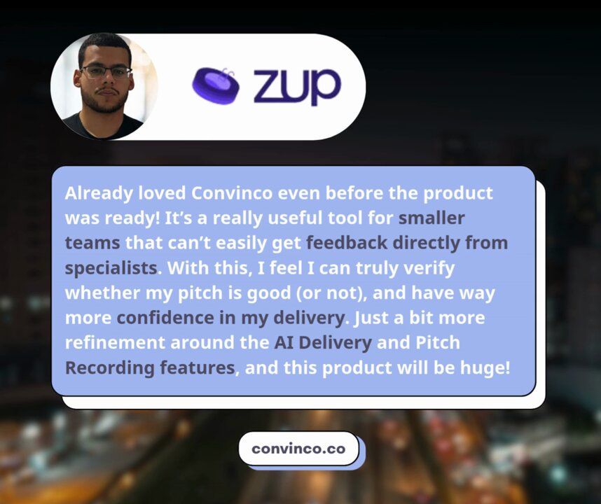 🌟 Client Spotlight! 🌟 "Already loved Convinco! It's super useful for smaller teams needing specialist feedback. Now, I feel confident verifying my pitch's quality. Refine the AI Delivery/Pitch Recording, and Convinco will be huge!" 🚀 #CustomerFeedback #SalesTools