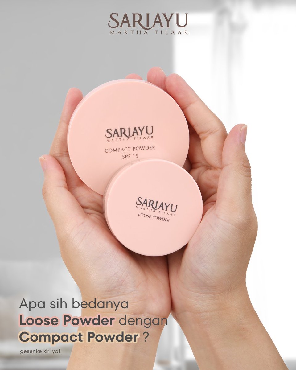 Biar nggak salah pakai, swipe left buat tau perbedaan Loose Powder dan Compact Powder deh~~ #Sariayu #SariayuLoosePowder #SariayuCompactPowder #LoosePowder #BedakTabur #CleanBeauty