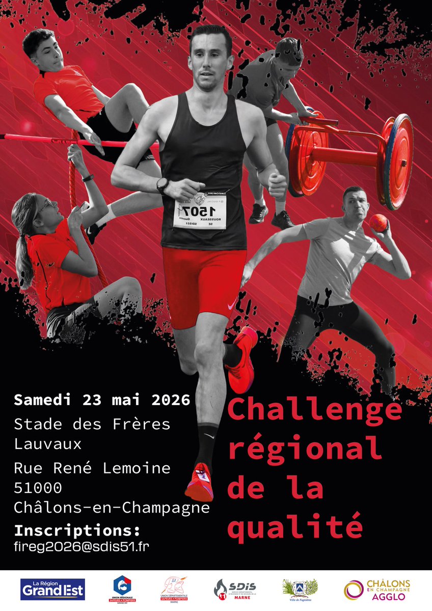 📣 #SaveTheDate 🗓️ Dans un mois rendez-vous pour la finale régionale du challenge de la qualité du Grand Est❗️ 🗓️ Le samedi 23 mai 2026 📍Au stade des Frères Lauvaux, Rue René Lemoine, 51000 Châlons-en-Champagne