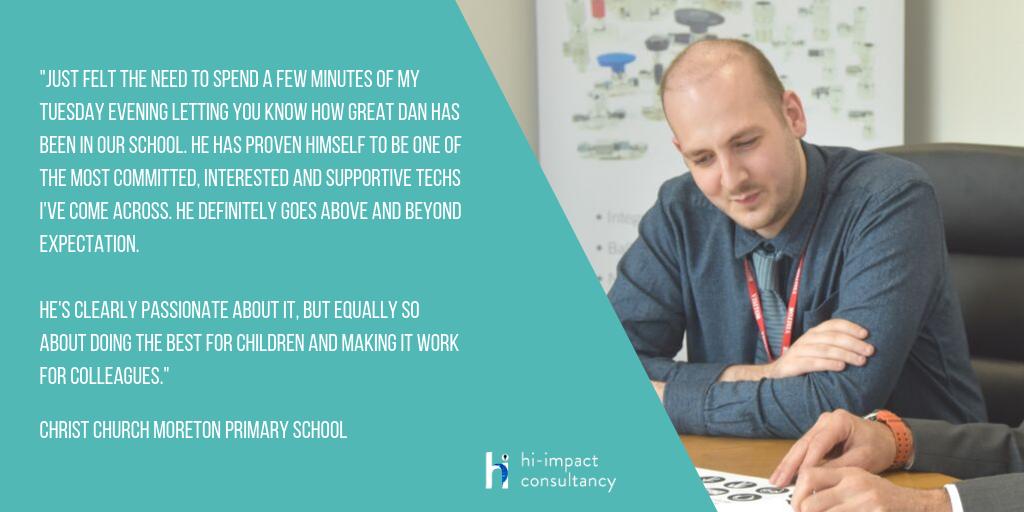 What fantastic feedback for Dan! We love hearing back from our hi-impact schools- thank you @ChristchurchMor! #hiimpactschool #feedback #schooltechsupport